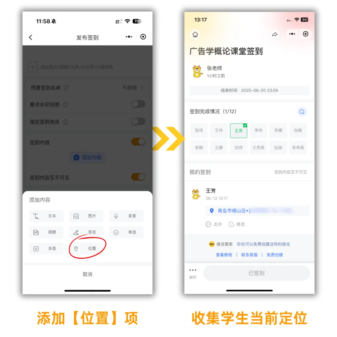 接龙管家的定位签到功能,完美解决了这一问题: