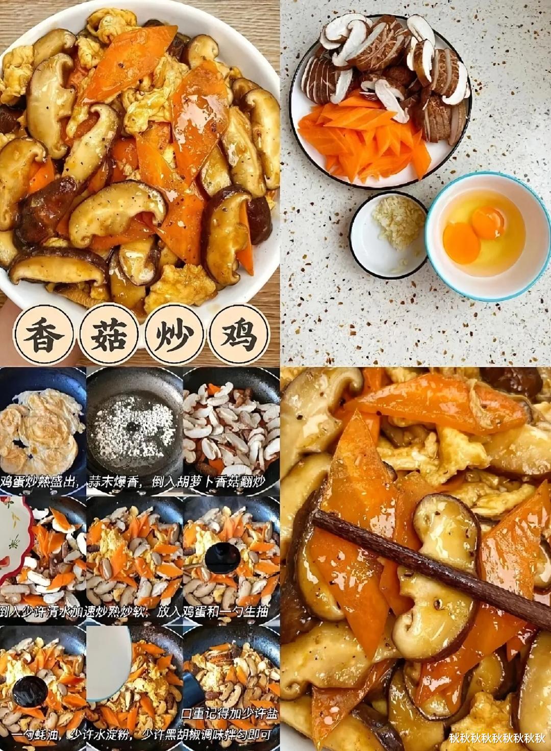 主料:香菇、鸡肉(这里用的是鸡蛋代替鸡肉)、胡萝卜。