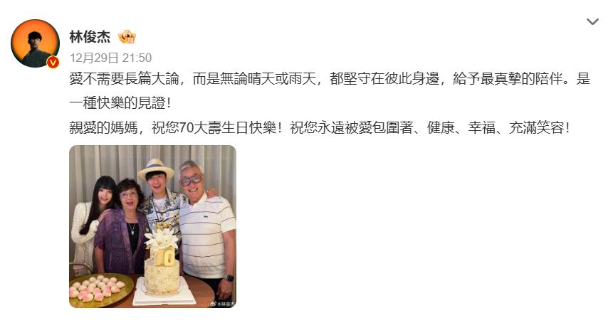 直到12月29日,林俊杰才晒出了一家人的合照。