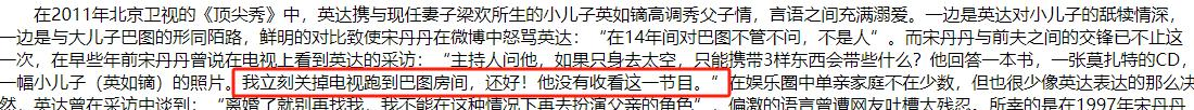 英达甚至在一档节目中说:“离婚之后就不要来找我了,我怕伤害到现在的儿子。