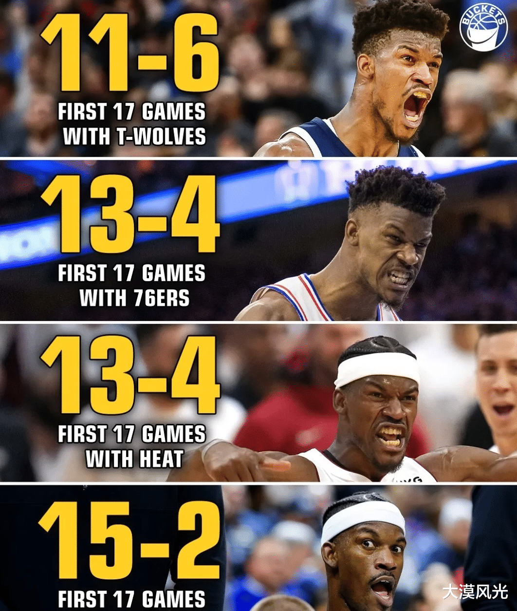 巴特勒自加盟勇士后,已经为勇士出战了18场比赛,并两次拿到三双,而本赛季为热火出战25场,仅1次三双。