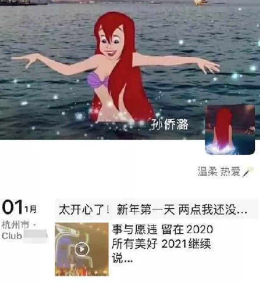 2021年1月1日凌晨,如往常一样睡不着的孙侨潞,在凌晨两点发布了朋友圈,里面写道:“太开心了!新年第一天,两点我还没睡......”