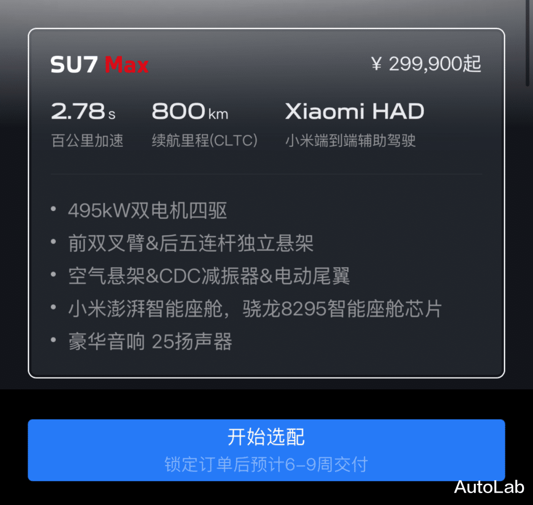 目前SU7 Pro/Max交付已经提速到6–9周,是时候来一波“加量不加价”了。