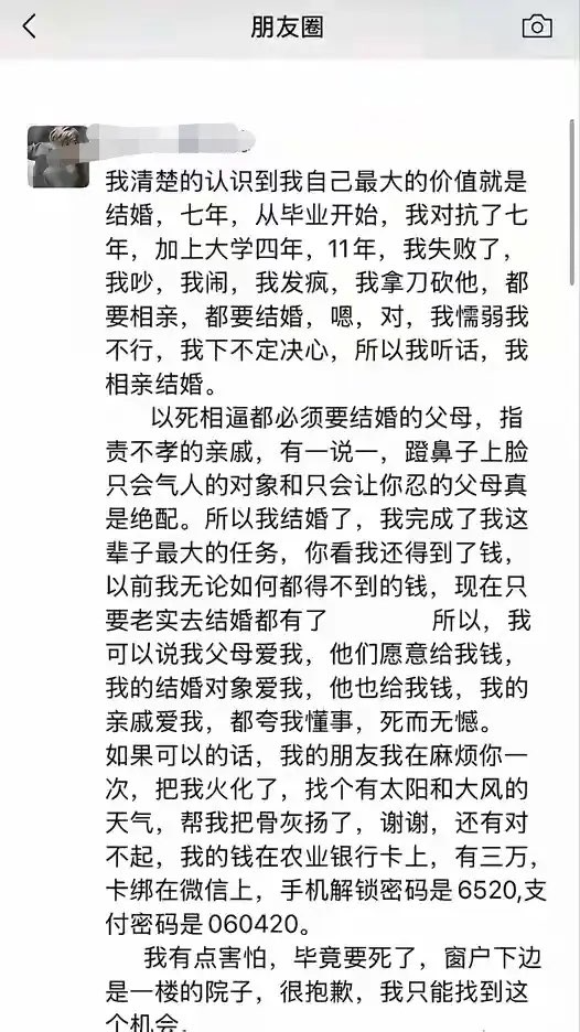 28岁,多么年轻的生命,作为拥有编制的女教师,有光明的前途,有美好的一生要去度过,却因为无法处理父母及亲戚的逼婚,最终只能了结了自己。
