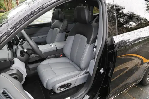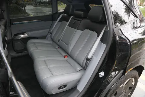 作为一款和特斯拉Model Y同级的车型,极氪7X的长宽高分别为4825x1930x1666mm、轴距2925mm,作为参考,Model Y的长宽高为4797x1920x1624mm,轴距为2890mm。极氪7X的舱内采用大五座布局,简单使用仿皮材料覆盖表面,皮料质感轻薄柔软,视觉效果与真皮无异,除非特意用手指按压查看皮料纹路,否则还是挺难判断其间差异的,制造消耗成本较少,而构建的档次氛围感确有提升。仿皮设计受气温干扰影响较大,夏、冬两季连带削弱舒适性,但问题交由前排通风与加热功能解决,保留了更好的乘用体验。而且后排还配备了电动躺椅,拥有134°最大靠背角度,让后排乘客能够找到更加舒适的坐姿,无论是长途旅行还是日常通勤,都能提供优质的乘坐感受。此外,极氪7X的后排地板还采用纯平设计,进一步提升了中间乘客的腿部空间舒适度,即便是满载情况下,也能保证每位乘客都有较为宽松的活动范围。