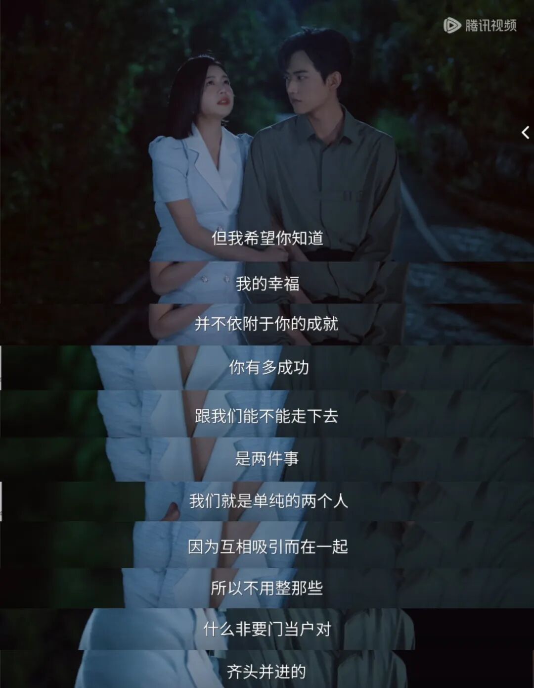 从李雾选择大学到决定是否出国留学的剧情推进中,我们可以看到,爱情中的根本价值观问题是人们无法回避的,终有一刻会彻底爆发。在这一点上,剧中岑矜的坚持,以及对李雾人生路径的展现,都传递着“先爱自己”“先做最好的自己”的核心观念,倡导着完整人格的相互看见与共同成长,对“牺牲付出”型的传统爱情观进行了非常深入的审视。