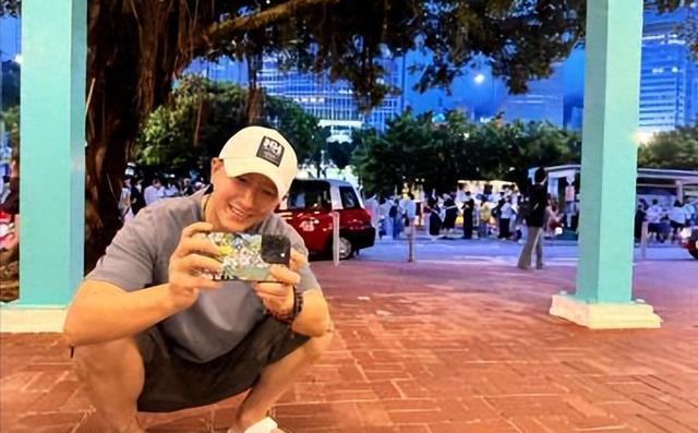 2024年8月20日,韩庚在社交平台上发布了一条动态,配图是他蹲在地上举着手机。