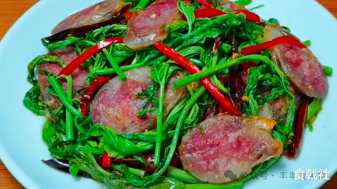 嫩绿带红的香椿芽,带着独有的清冽香气,焯水后格外鲜嫩。切成段的香肠微微出油,咸香醇厚,一热一鲜撞在一起,瞬间满屋飘香。大火快炒,火候刚好,香椿的清香不流失,香肠的肉香不腻口,两者相融,鲜得清爽,香得浓郁。