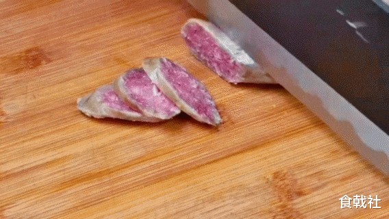 5香肠晾至温热,斜刀切成片,不用切的太薄,稍微厚一点,这样在炒的时候不容易碎,全部切好后放在盘里。