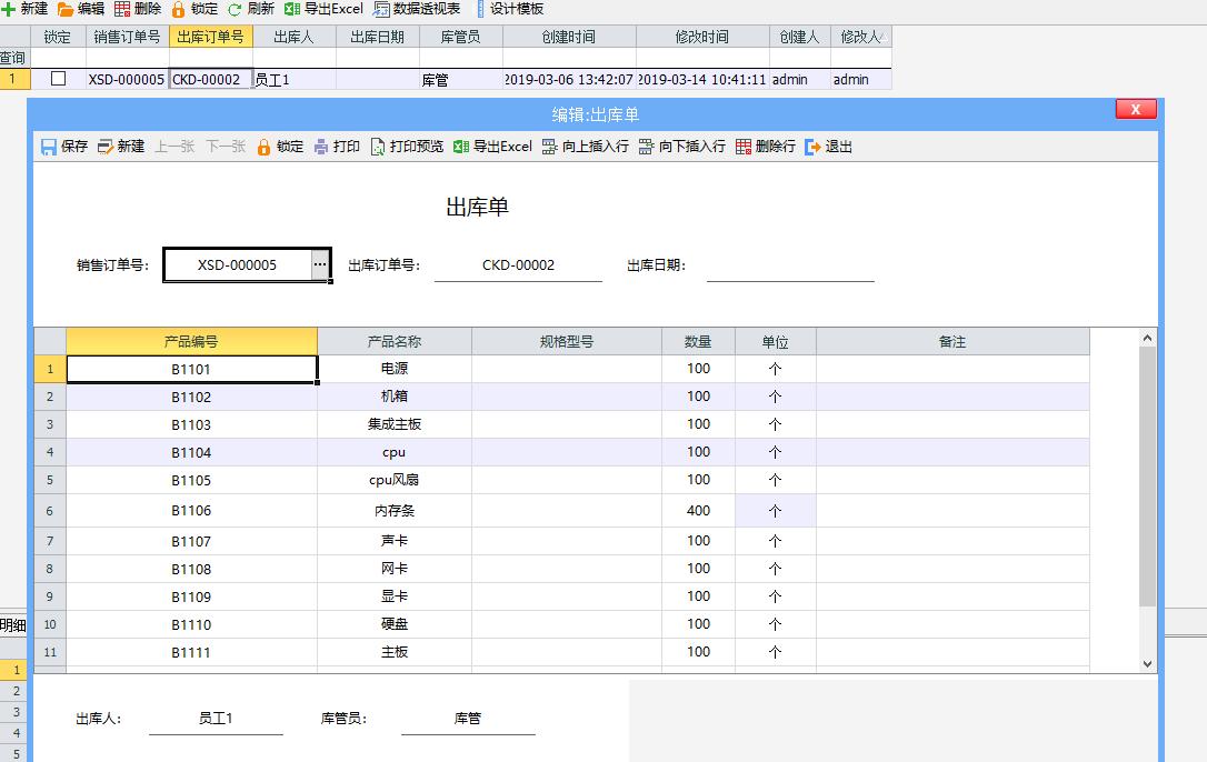 库存足够:进行拣货,对库存数量进行更改,生成出库单;