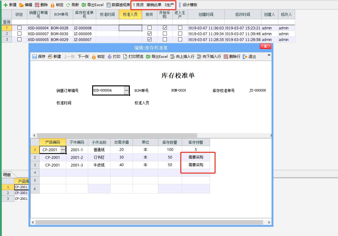 BOM清单(如图1):审核无误生成库存较准单(如图2),比对库存信息,按顺序进行如下操作: