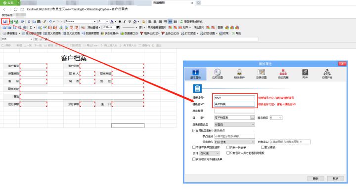 ⑧再点击保存,设置模板名称:客户档案。再点击确认。