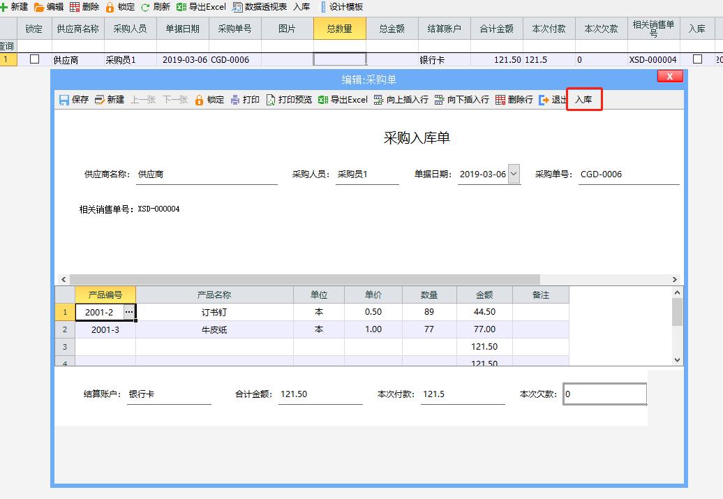 库存不足:开始采购;生成采购订单,并进行入库操作,库存表数量自动更新;