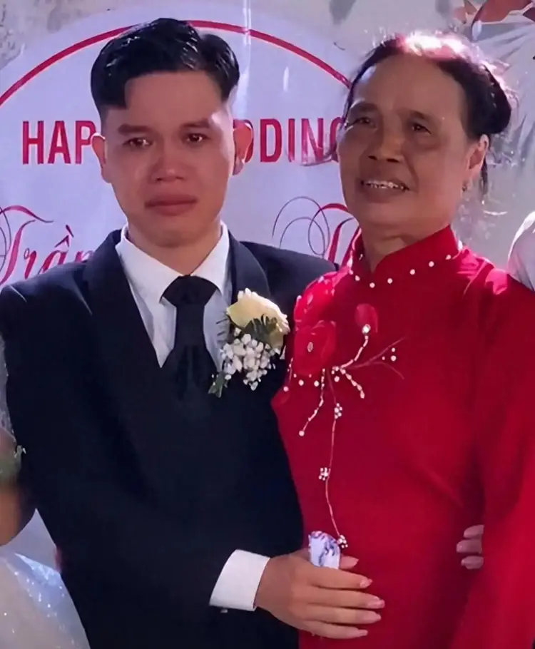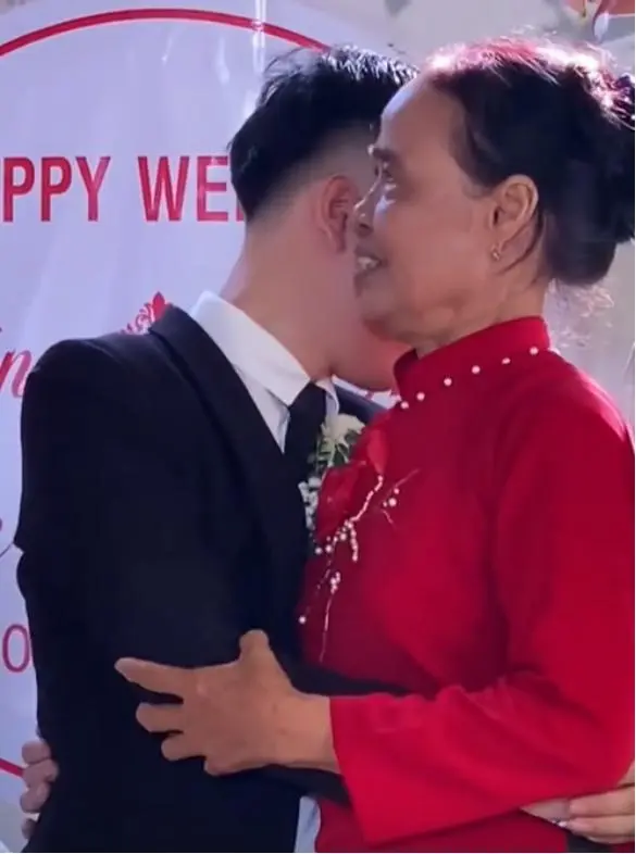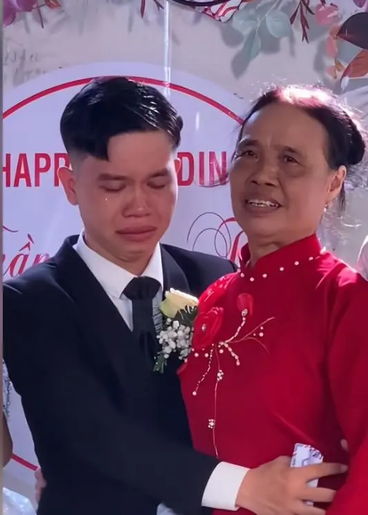 看新郎哭得如此伤心,这位母亲只好拍着儿子的后背,动情地对新郎官说道:“乖啊,以后常回家。”此情此景像极了小朋友第一次去幼儿园哭着找妈妈。
