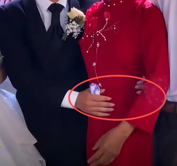 从网上流传的照片和视频画面看,婚礼举行到两家人合影留念的环节,一对新人站在双方父母的中间。