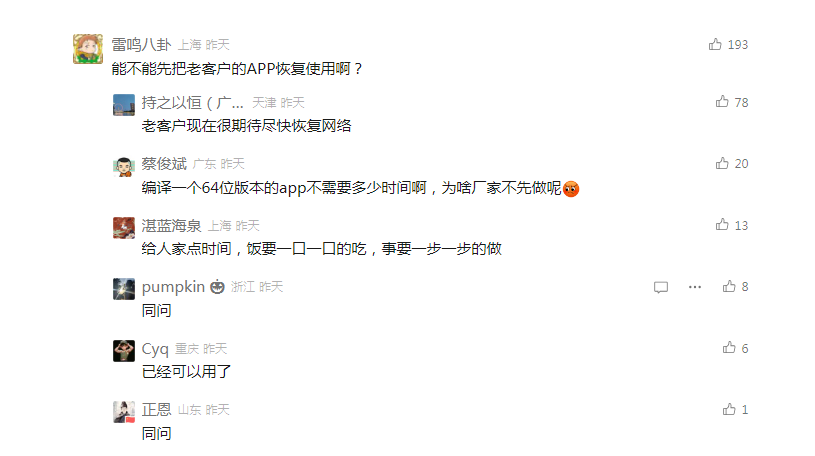 在威马汽车官方微信公众号上,一位车主直言,能不能先把老客户的APP恢复使用啊?还有的表示:“请先把售后恢复,老车主有地方售后,你们的新车才能卖出去。”
