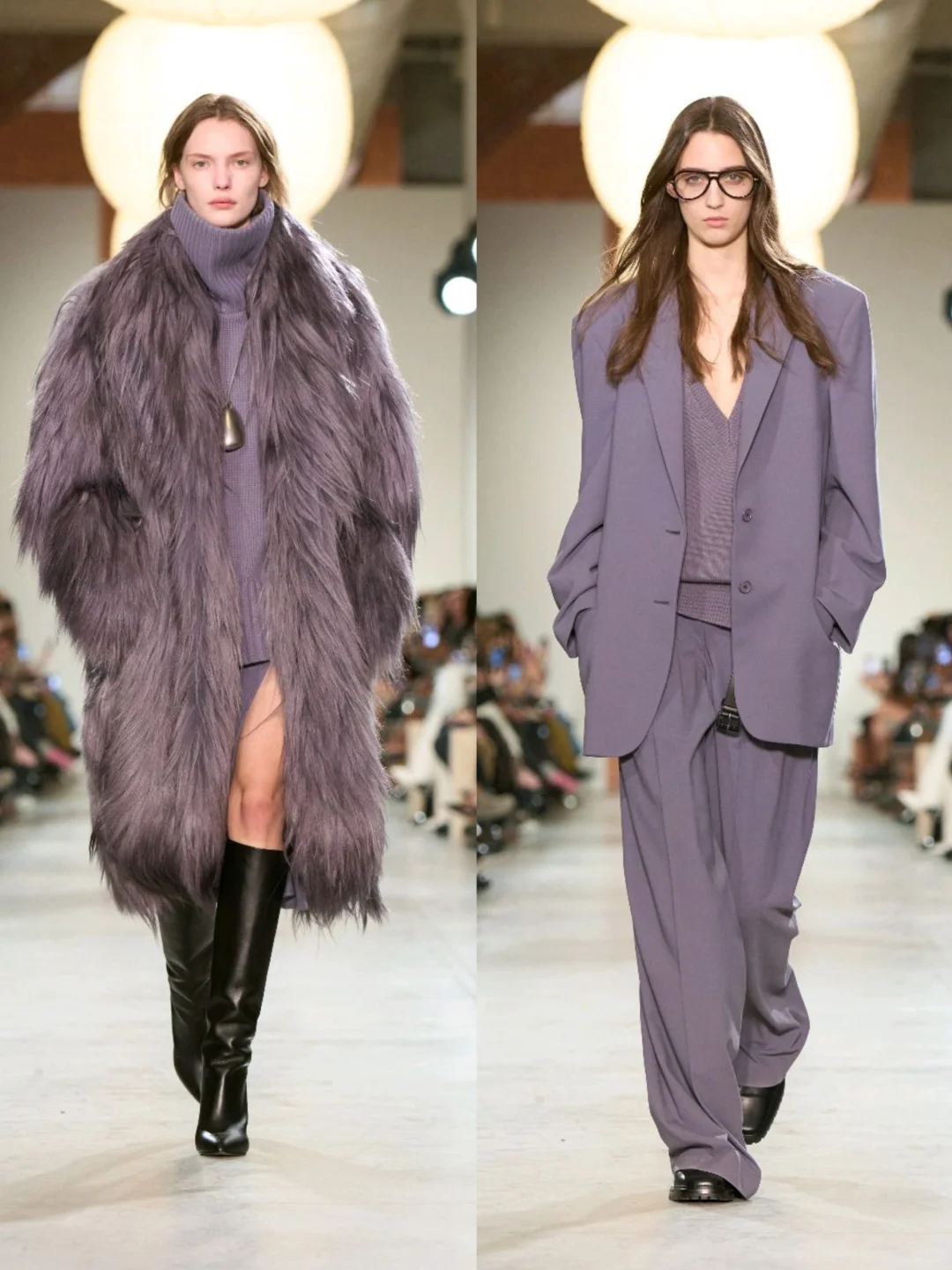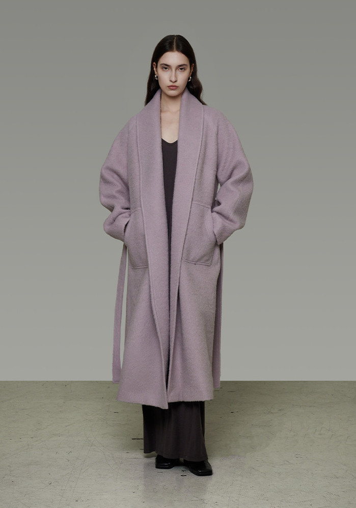 软糯的香芋紫廓形大衣内搭紫色毛衣,高级感就这么自然而然地流露。