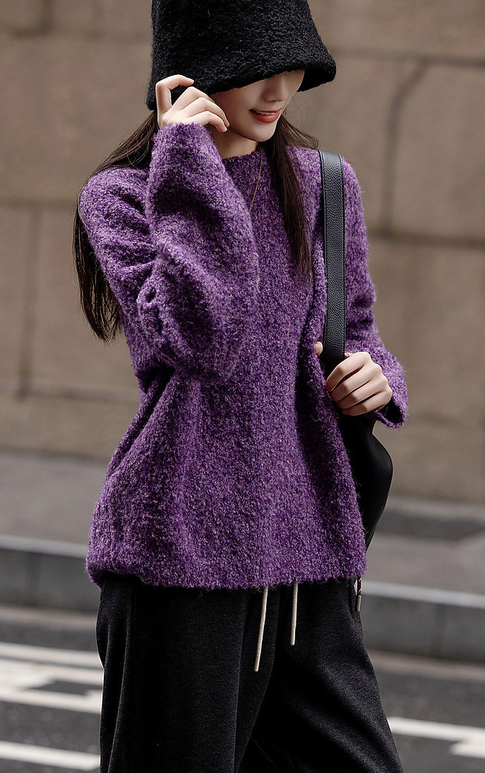 毛衣作为冬季穿搭的 “基础款王者”,紫色针织衫凭借材质的软糯与色彩的张力,成为打造多元风格的关键。
