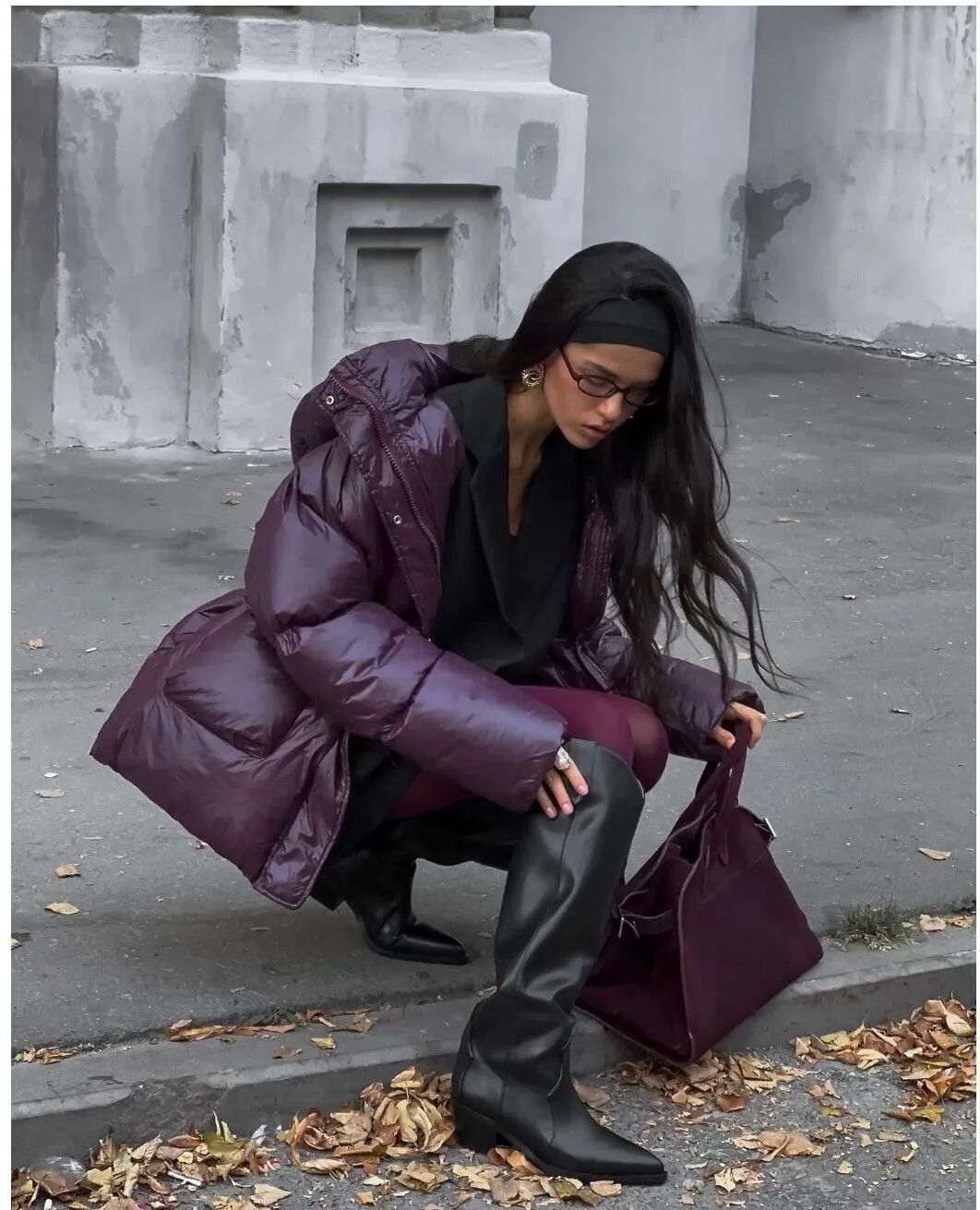 西梅紫大衣配咖色系、白色系,一个温暖,一个清爽。大地色系的醇厚质感,完美托起西梅紫的华美,整体散发着手捧热饮翻阅旧书的温暖书卷气,沉稳而富有内涵。