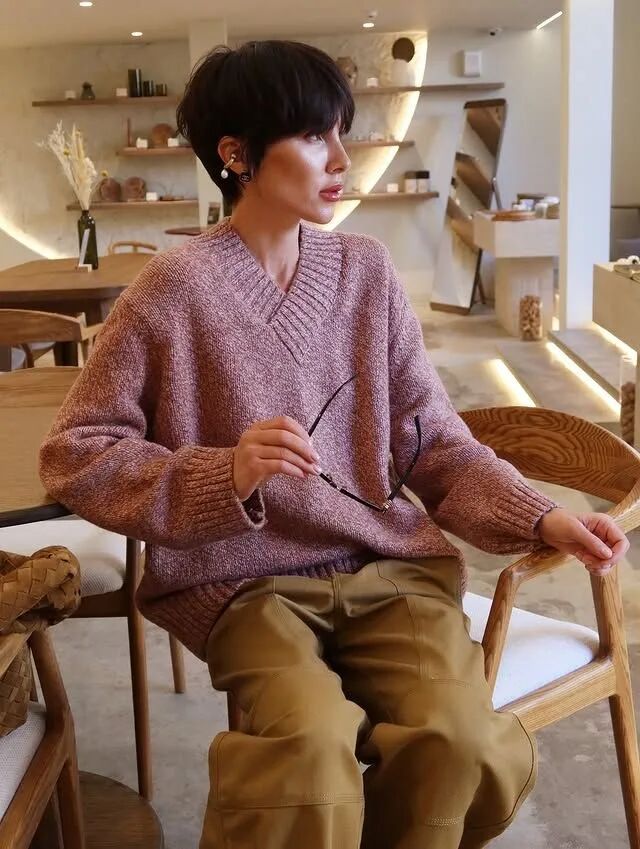 选择软糯的羊绒、细腻的精纺羊毛或带轻微马海毛质感的款式,既能保证保暖性,又能营造慵懒随性的氛围。