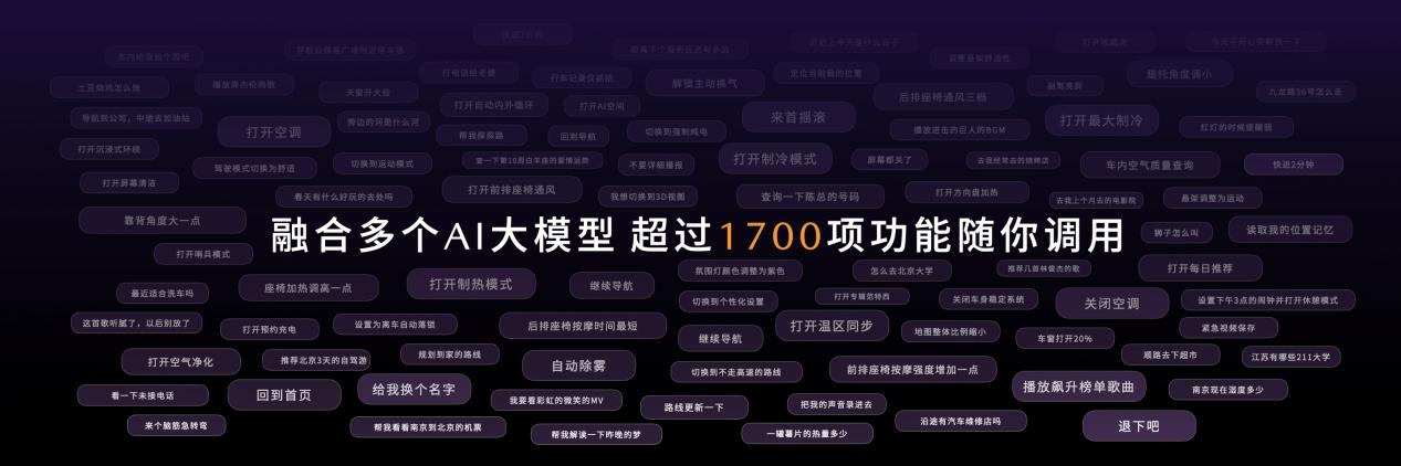 在AI智能化领域,EZ-60打造了人—车—环境跨模态的人机交互AI框架,基于大模型对用车场景的剖析理解和数据的精心训练,革新了人机交互方式。为让用户无压力、无门槛使用海量的功能,EZ-60提供了AI助手,用户无需了解车辆有多少功能,只要想用,超过 1700 项功能可随时通过AI助手调用,实时呈现。出行、吃喝玩乐、聊天、车控等等需求,语音指令可一语直达,功能无折叠。