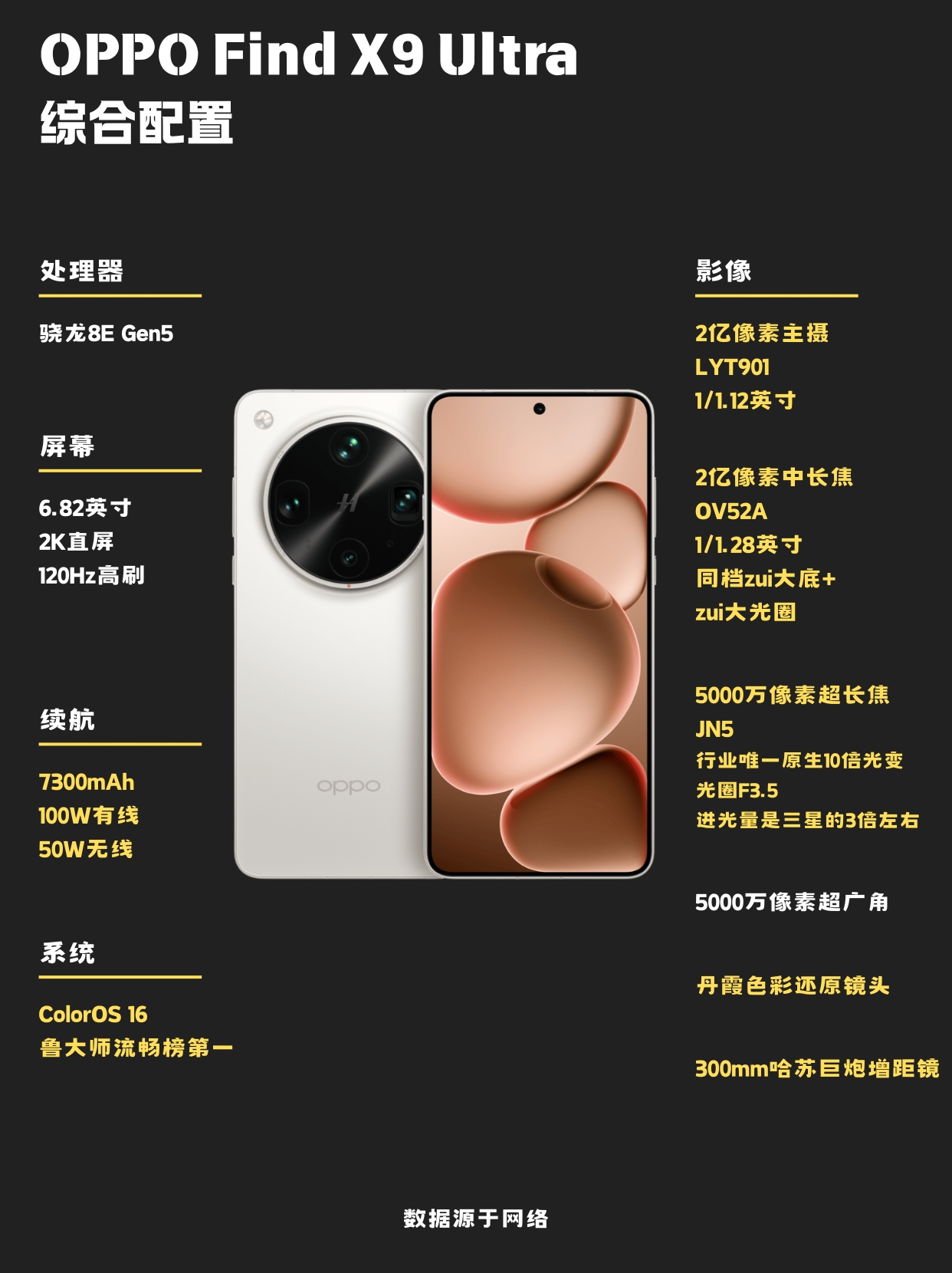 不过OPPO Find X9 Ultra现在看就很有诚意,用了两枚2亿像素的镜头,其中一枚是主摄,一枚是3倍潜望,据说进光量是行业zui高的。