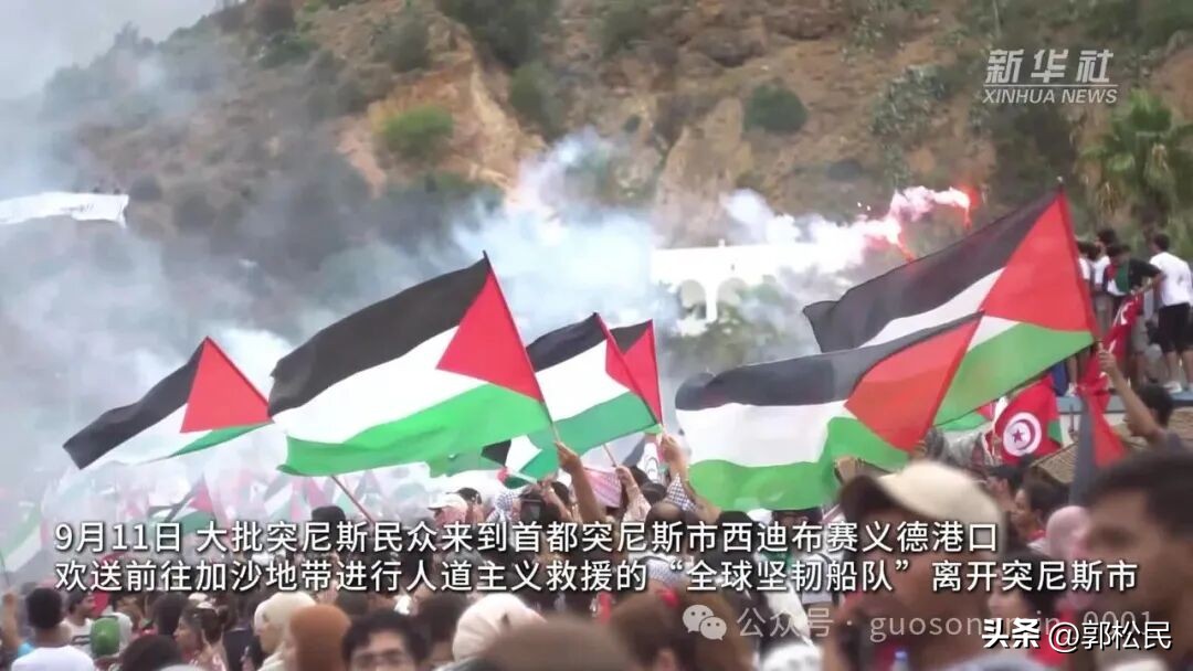 船队在海上行进的每一厘米,船头激起的每一朵浪花,都在向全世界发出无声控诉:以色列正在加沙进行大屠杀,加沙的妇女和儿童,正在饥饿中死去,正在轰炸中被撕成碎片……