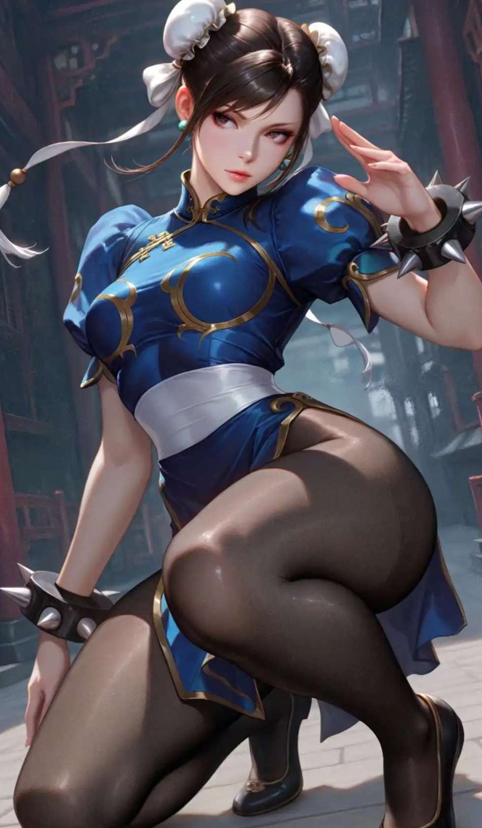 这三位什么概念?蒂法穿的是黑色背心+长裤,劳拉是探险工装,春丽直接一件旗袍包到脚踝。