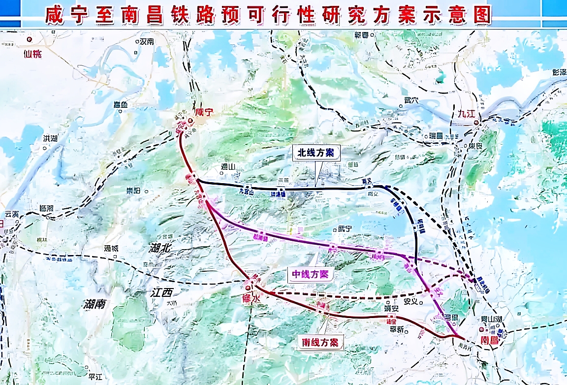 武咸昌高铁的武汉至咸宁段将与既有的武咸城际铁路共线,而咸宁至南昌段将新建时速350公里的高速铁路。而咸宁至南昌高铁将由武咸城际铁路咸宁南站引出,沿线经过通山、修水、靖安奉新、安义等地至南昌,最终接入南昌西站。目前,武咸昌高铁已经被纳入湖北省十四五规划,长江沿岸铁路集团董事长马春生在全国两会上建议将武咸昌高铁纳入国家中长期铁路规划,并尽快实现开工建设。