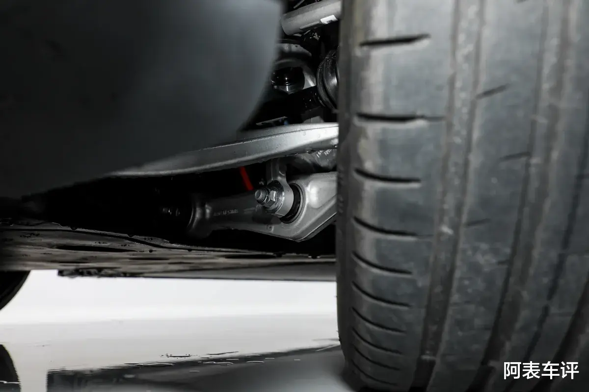 实用细节上,半隐藏式车外门把手新增机械解锁机构,应对断电、故障等极端场景更安心;后轮宽度从245毫米提升至265毫米,配合全系标配的前四活塞固定式制动卡钳,100-0km/h制动距离达33.3米,抓地力与制动稳定性显著提升,日常变道、紧急制动的操控安全感更足。