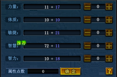 推荐方案:全点智慧。魔法师技能有高额法术加成,智慧收益最大化的。
