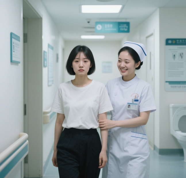 她正跟一个穿着白大褂的医生站在无人的走廊处。