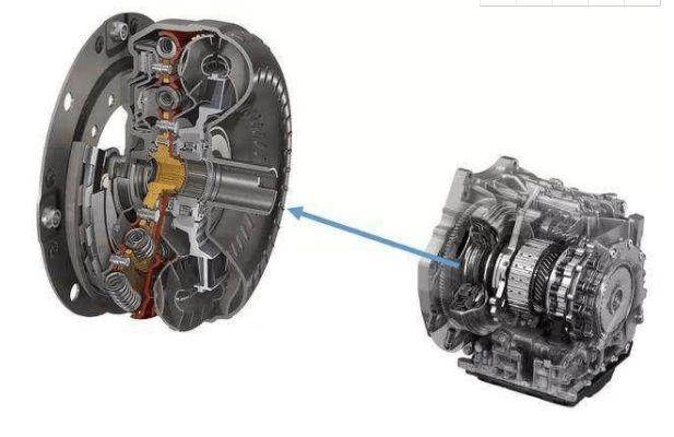 变速箱与发动机之间的间隙通常由变矩器缓冲,发动机动力通过变速箱油传递。变矩器实际上是一个充满变速箱油的封闭腔。动力传递的原理是发动机带动泵轮高速旋转,推动传动油高速流动。传动油推动导轮转动,最终带动涡轮。同步旋转。涡轮的输出轴与AT的输入轴相连,实现动力传递。