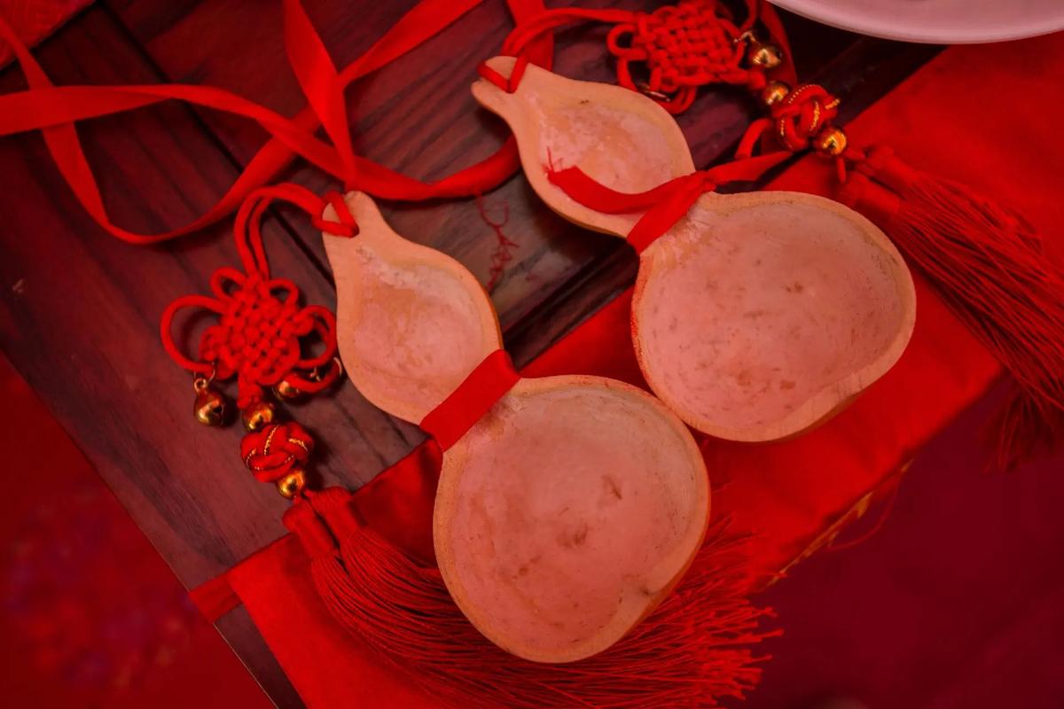 到现在,葫芦瓢早没了踪影,但红绳、交杯的核心元素保留了下来,成了婚礼上最动人的仪式之一。