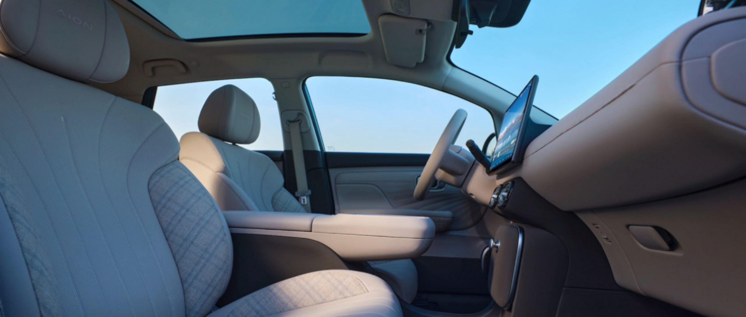 空间大了,舒适性更好的“大沙发”座椅一定少不了,埃安UT采用豪车同款蝴蝶型座椅,承托面积更大,填充柔软厚实,无论长途驾驶还是日常通勤,全家人都能坐得舒舒服服,同时支持前排座椅靠背放平,即可和后排连城一张大尺寸沙滩躺椅,简直就是移动的“席梦思”。