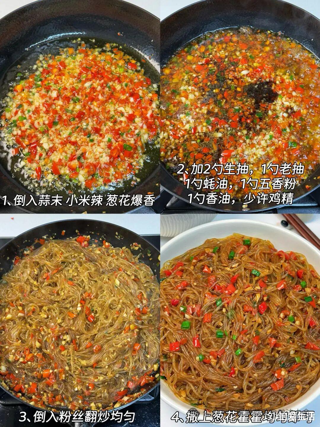 1. 准备食材:粉丝、大蒜、小米辣(可选)、葱花、生抽、蚝油、白糖、食用油。