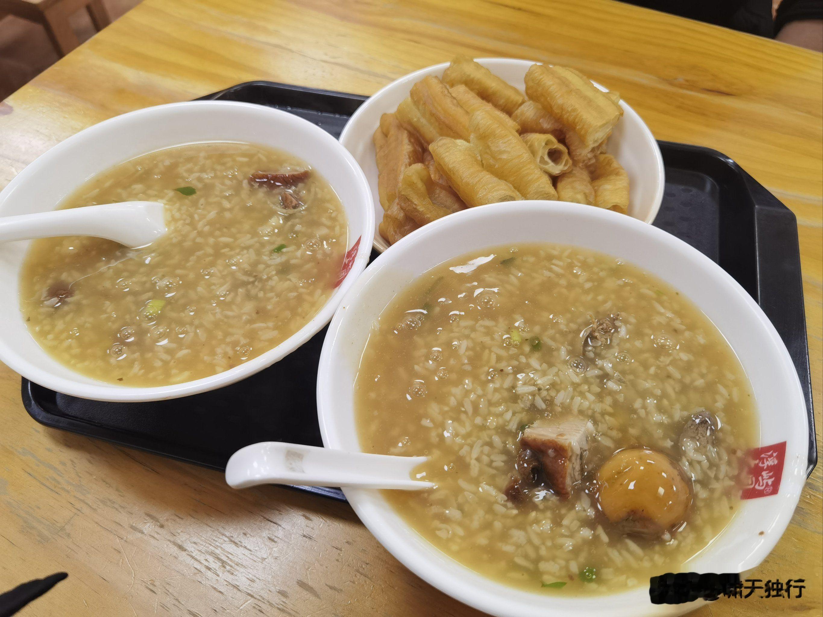 · 简介:以卤鸭卤汁熬煮粥底,米粒分明,粥汤粘稠。鸭肉咸香,标配是加一份油条泡着吃。