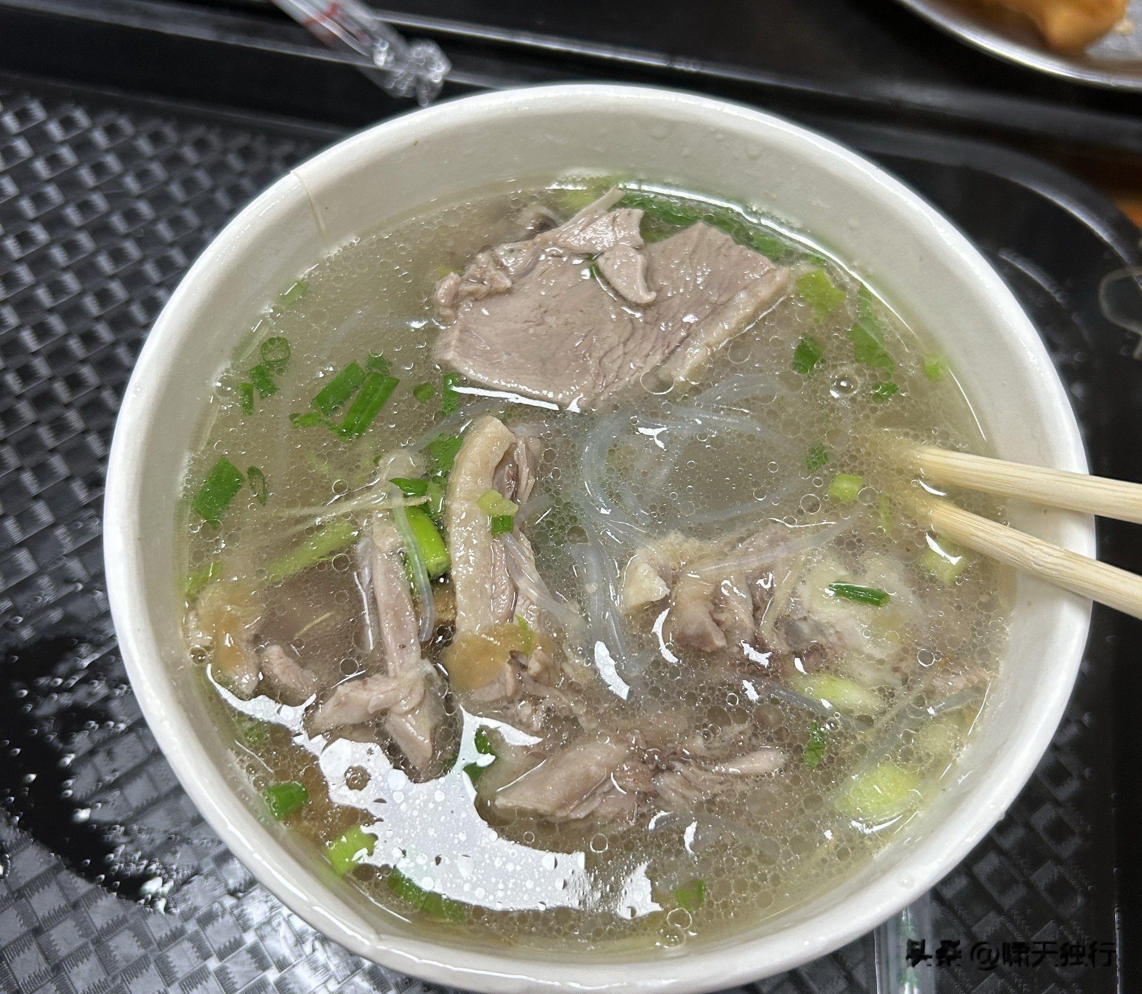 · 简介:鸭架慢炖清汤,配滑嫩的粉丝和土番鸭肉。汤头鲜甜清爽,鸭血、鸭胗等内脏也是热门加料选择。
