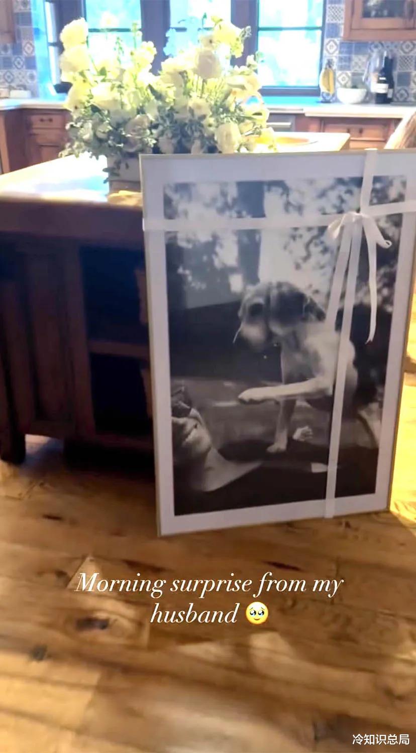 梅根配文:来自丈夫的早晨惊喜,后面还配了一个感动的表情符号。