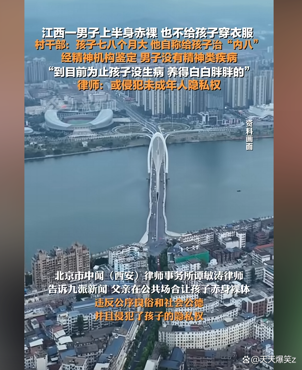 北京市中闻(西安)律师事务所谭敏涛律师告诉九派新闻,父亲在公众场合让孩子身体赤身裸体,违反公序良俗和社会公德,并且侵犯了孩子的隐私权。