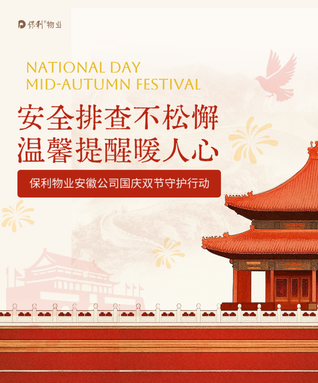 金秋送爽,举国同庆。我们即将迎来中华人民共和国成立75周年的盛大节日,保利物业安徽公司全体员工提前向您和您的家人致以最诚挚的节日问候!祝您国庆假期快乐,阖家幸福!