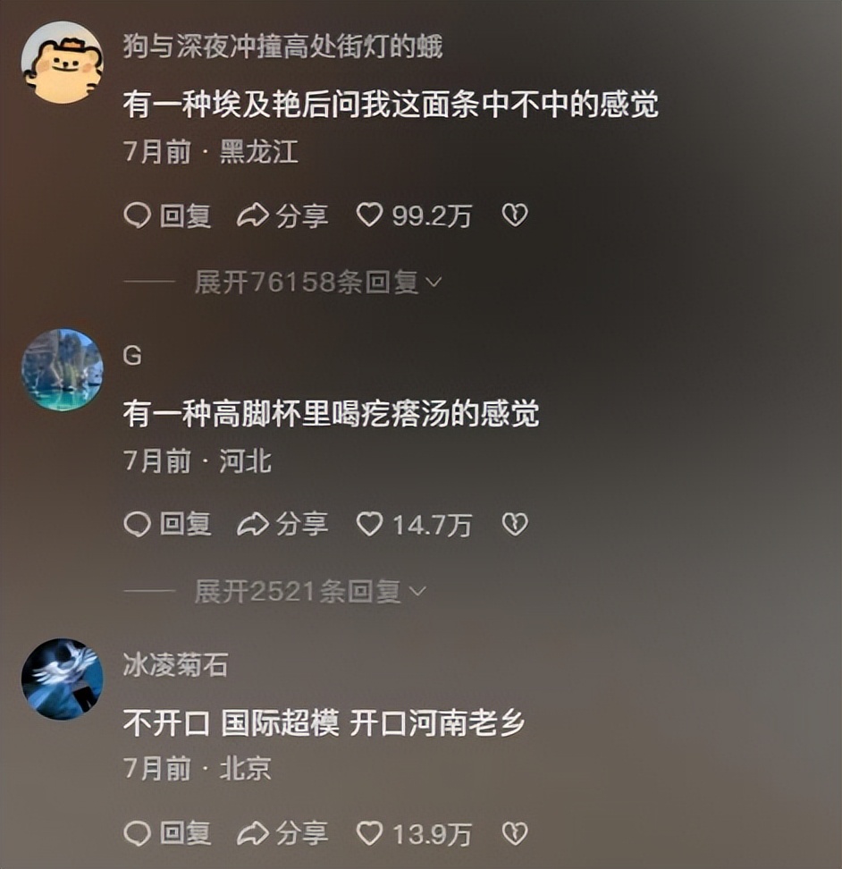 纷纷留言:有一种高脚杯里喝疙瘩汤的感觉。