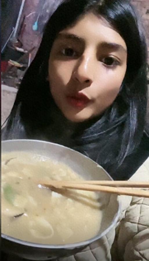 视频中,端着一碗手擀面的绝美女孩,就是我们今天的主人公。