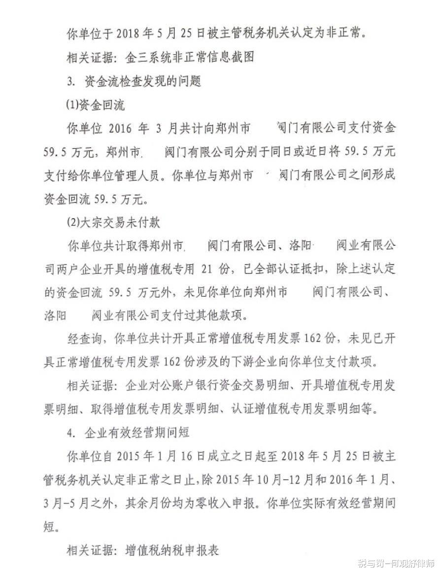 你单位共计取得郑州市XX阀门有限公司、洛阳XX阀业有限公司两户企业开具的增值税专用21份,已全部认证抵扣,除上述认定的资金回流59.5万元外,未见你单位向郑州市XX阀门有限公司、洛阳XX阀业有限公司支付过其他款项。