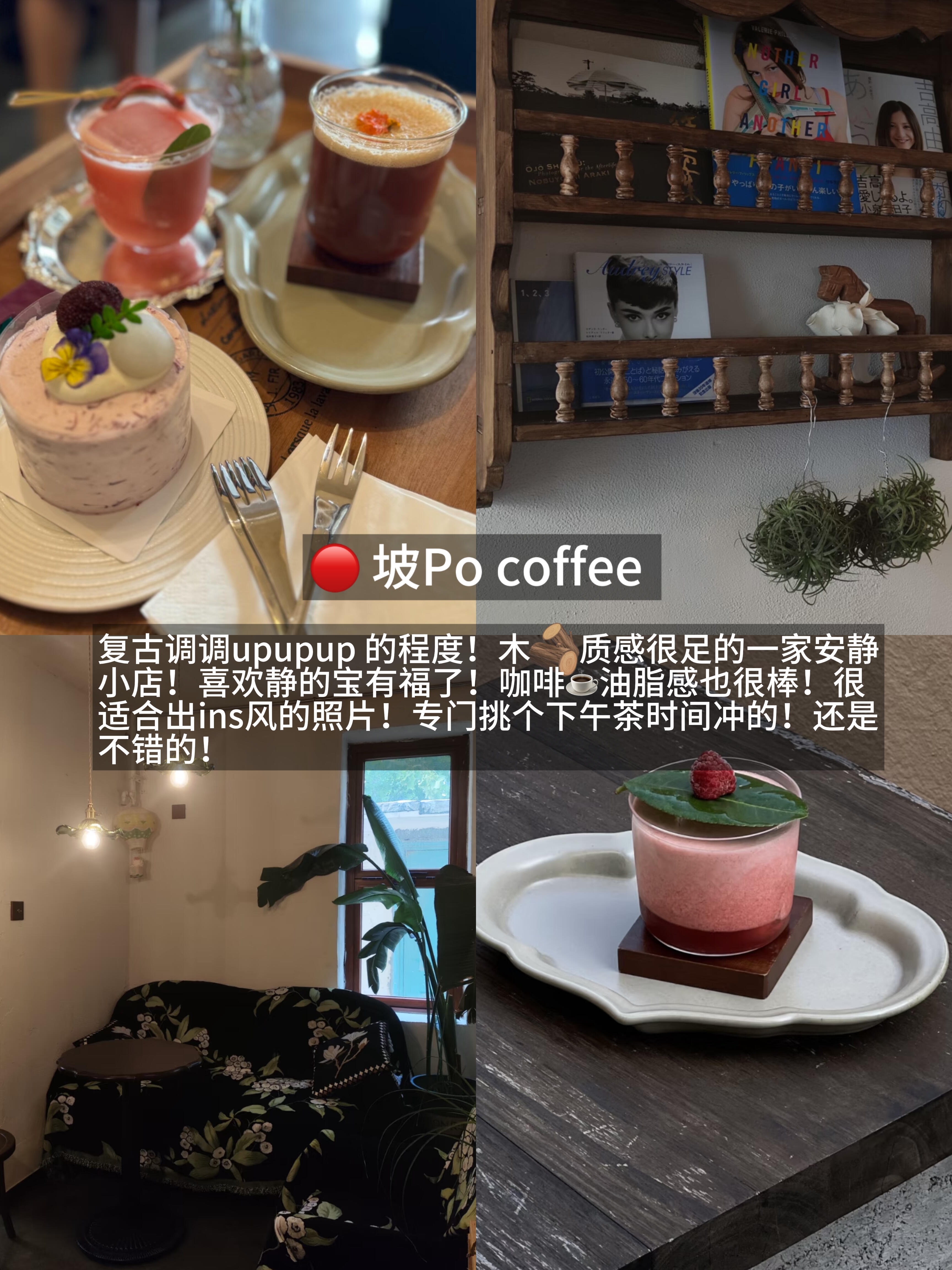 复古调调upupup 的程度!木🪵质感很足的一家安静小店!喜欢静的宝有福了!咖啡☕️油脂感也很棒!很适合出ins风的照片!专门挑个下午茶时间冲的!还是不错的!