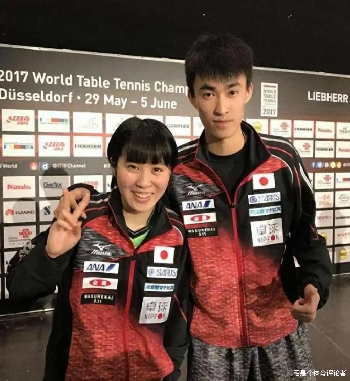 在这张照片上,一共有3位日本女乒的姑娘。她们确实亮眼,也确实突出。不过还有一个人非常值得一提,可千万不要忽略他。这个人就是: