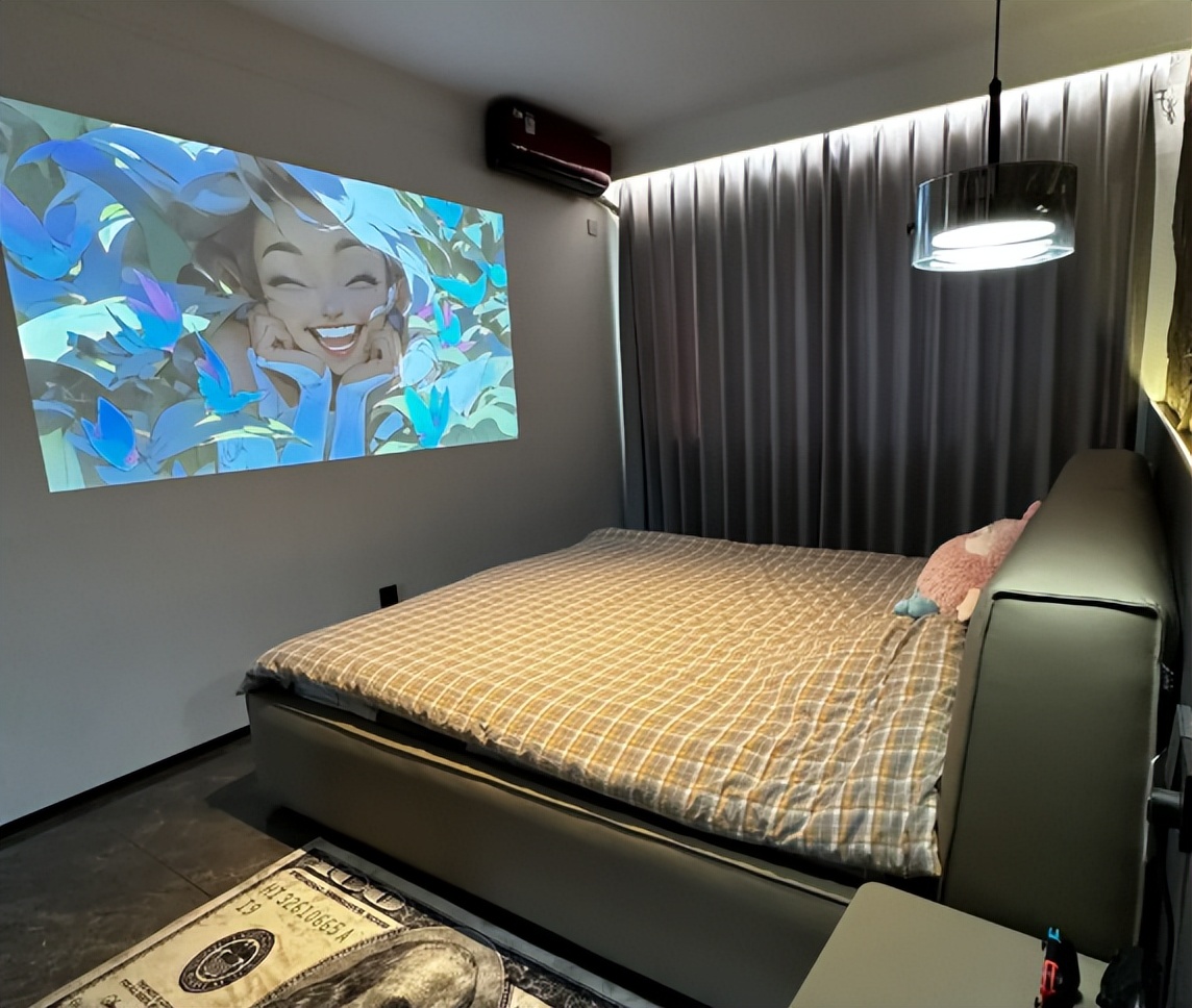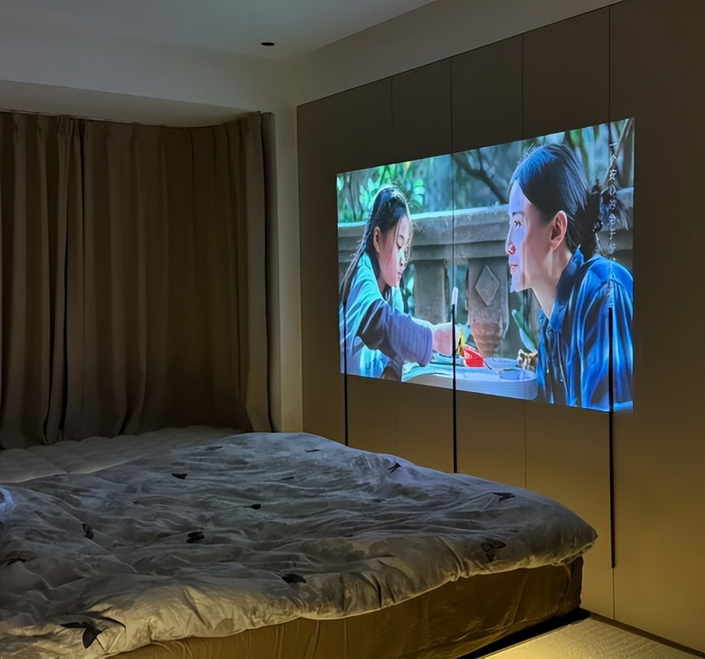 大家可以选购质量好点的投影仪,选择大品牌的投影仪,效果非常好,观影体验也强,机器很小,不管放在卧室里还是客厅中都可以,想看什么就投屏比电视机实用多了。