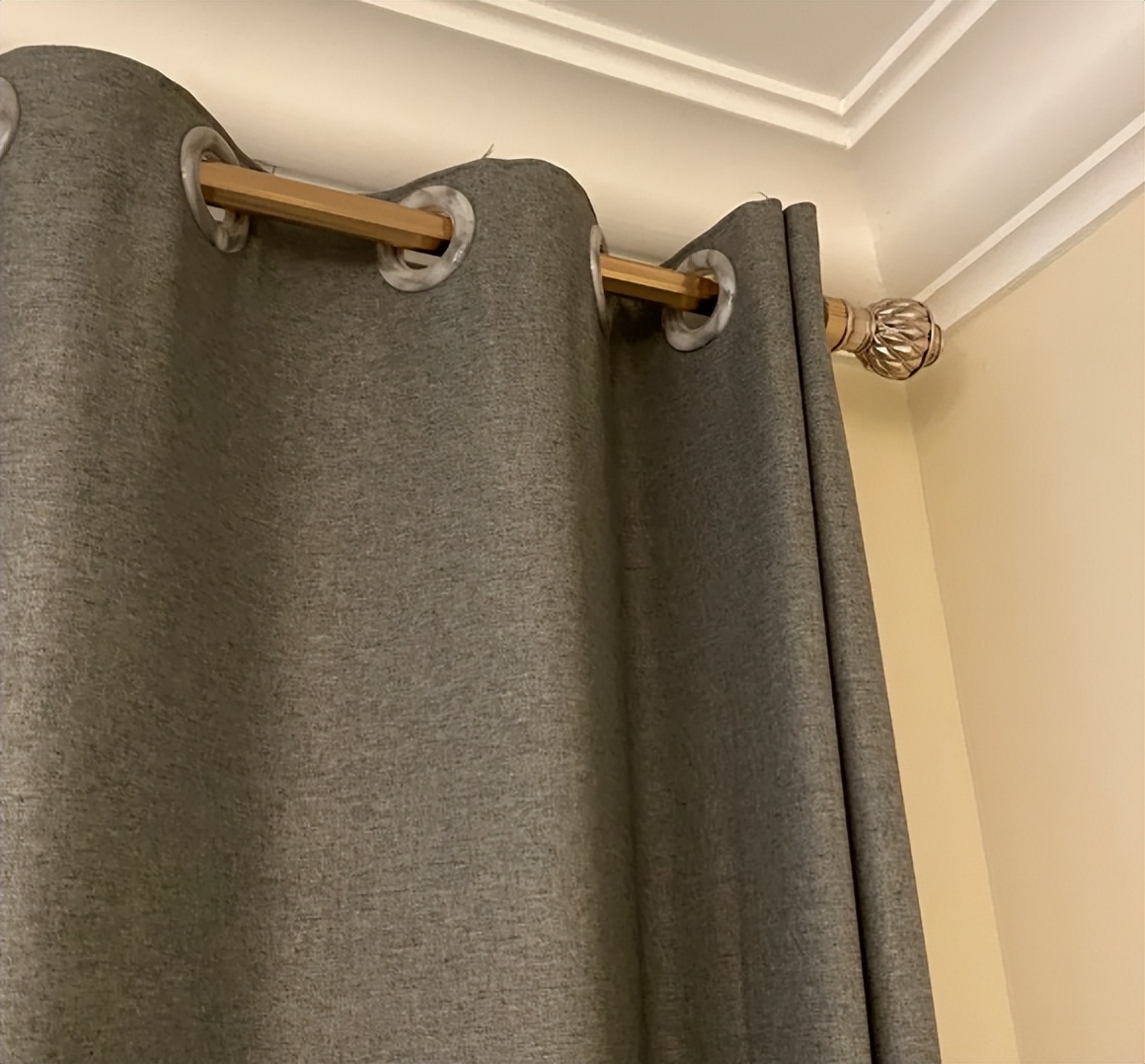 罗马杆的装修效果也不好,它固定在墙面之后,总有一部分凸出来,看着很突兀!