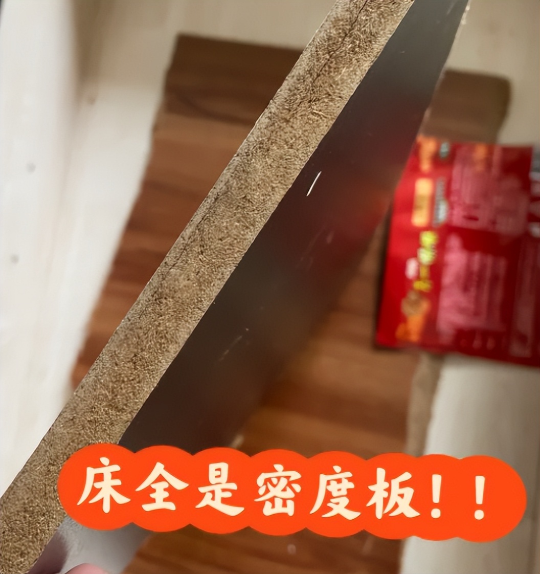 廉价的木板床,表面刷油漆,味道大,躺在床上总有一股油漆味,不舒服,对身体危害大。