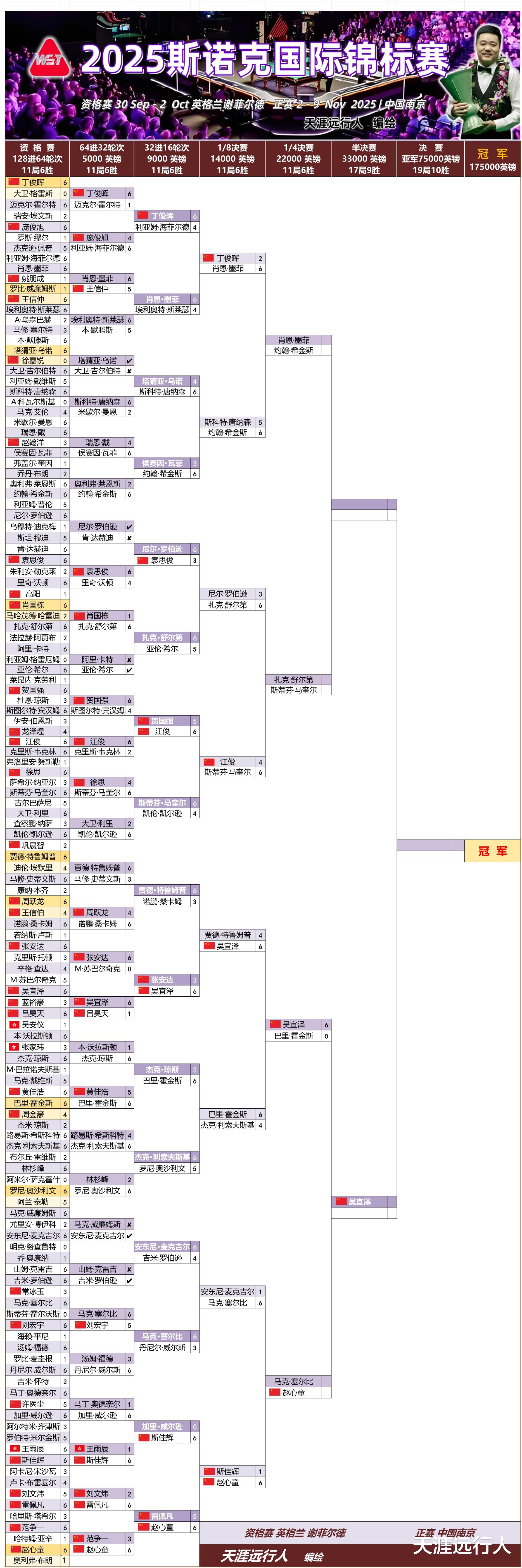 北京时间11月6日时分,2025斯诺克国际锦标赛1/4决赛,兰州小将吴宜泽对阵四强专业户、英格兰名将巴里·霍金斯的比赛结